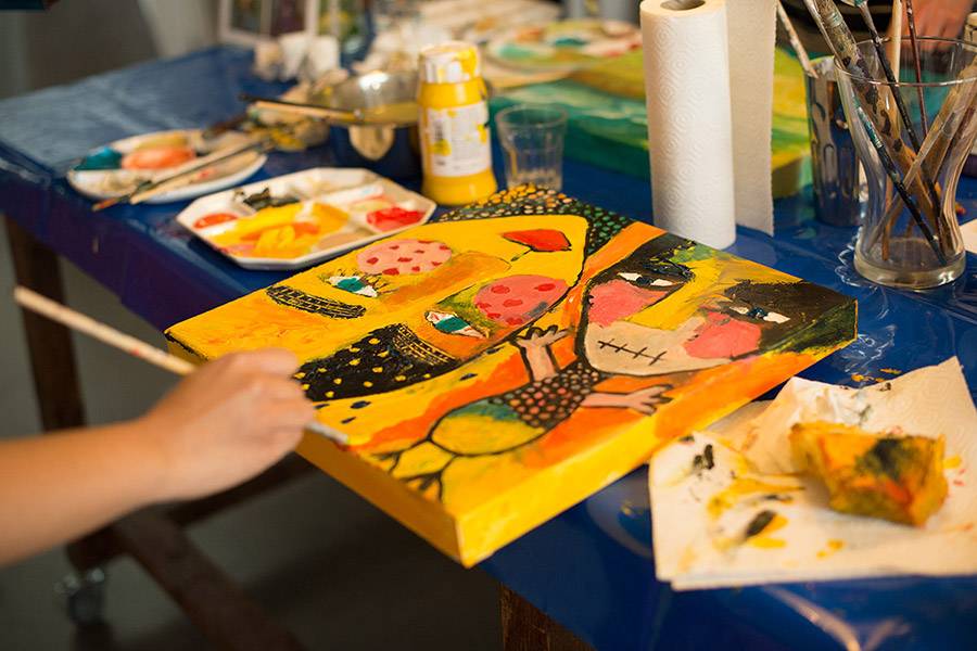 Stap in de wereld van Klasina Wieringa. Een workshop communiceren doormiddel van creëren, met de onderstaande te gek, gave schilderijen, vol emotie en kleurexplosies als resultaat!